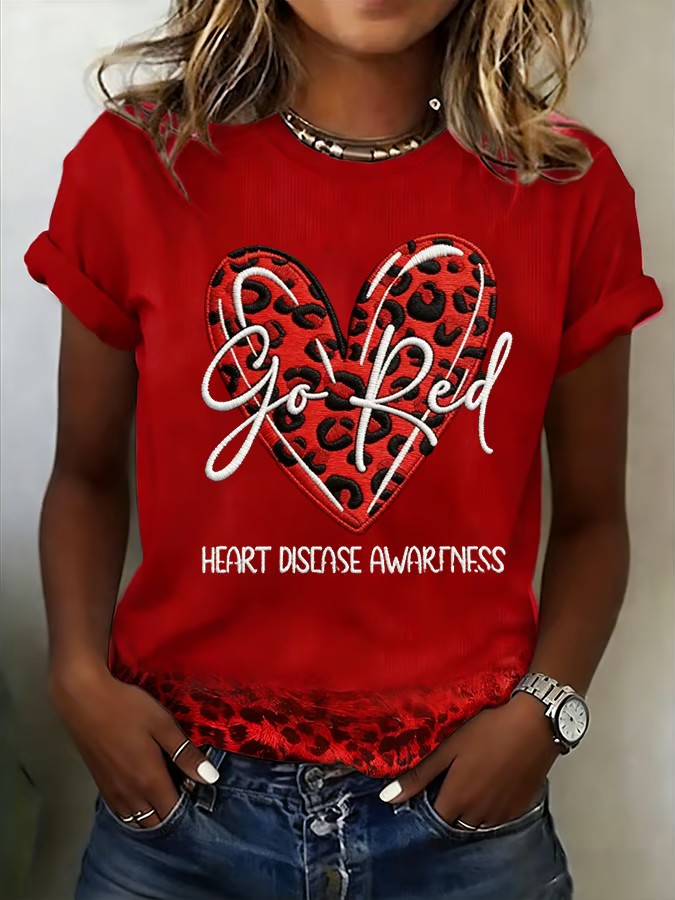 Women's Heart Disease Awareness Print T-shirt