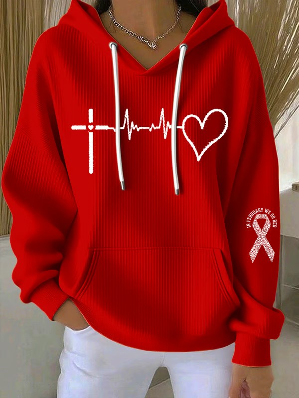 Women's Casual Heart Disease Awareness Print Hoodie