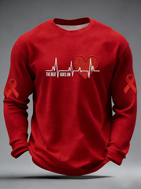 Men's Go Red Heart Disease Awareness Printed Waffle Long Sleeve Sweatshirt