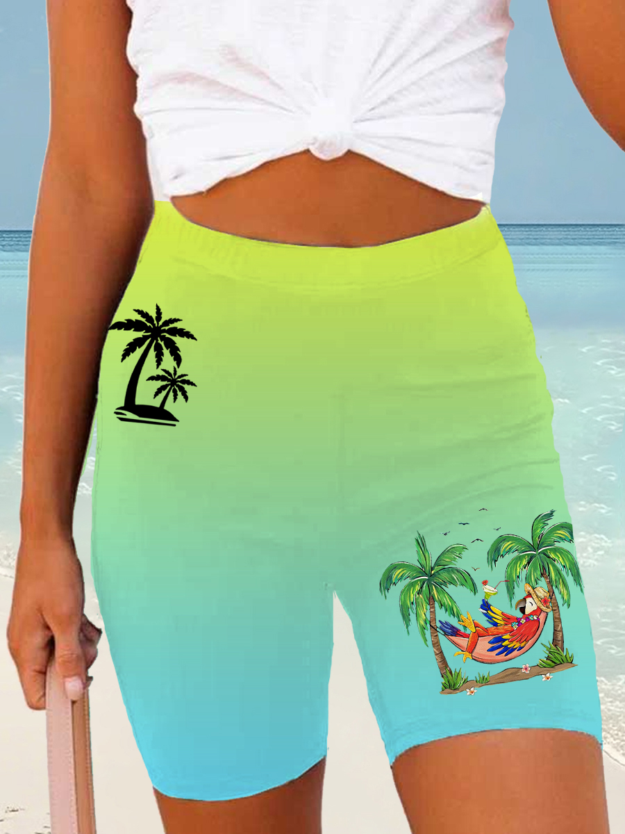 Women's Beach Vacation Parrot Palm Silhouette Print Casual Short Leggings