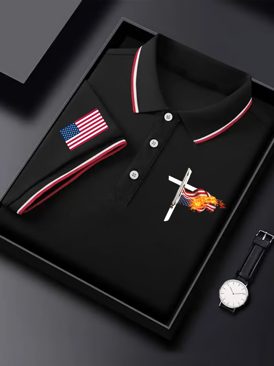 Men's Flag Cross Business Style Short Sleeve Shirt