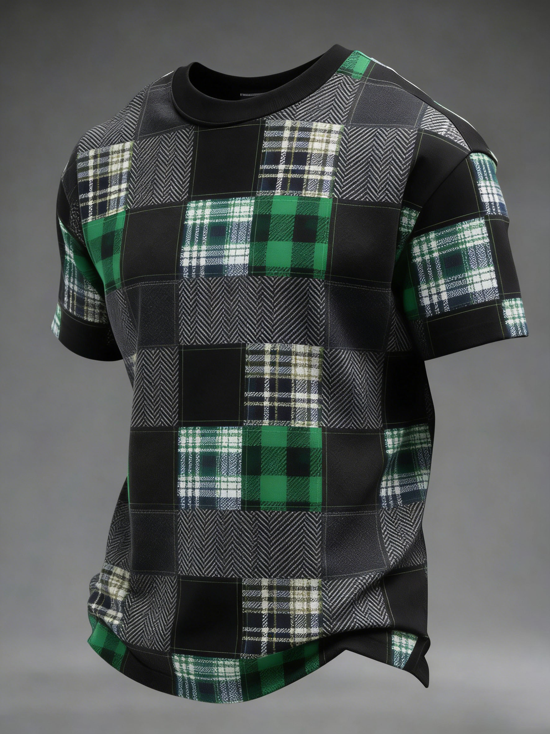 OFFMen's St. Patrick's Day Tartan Patchwork Printed T-shirt