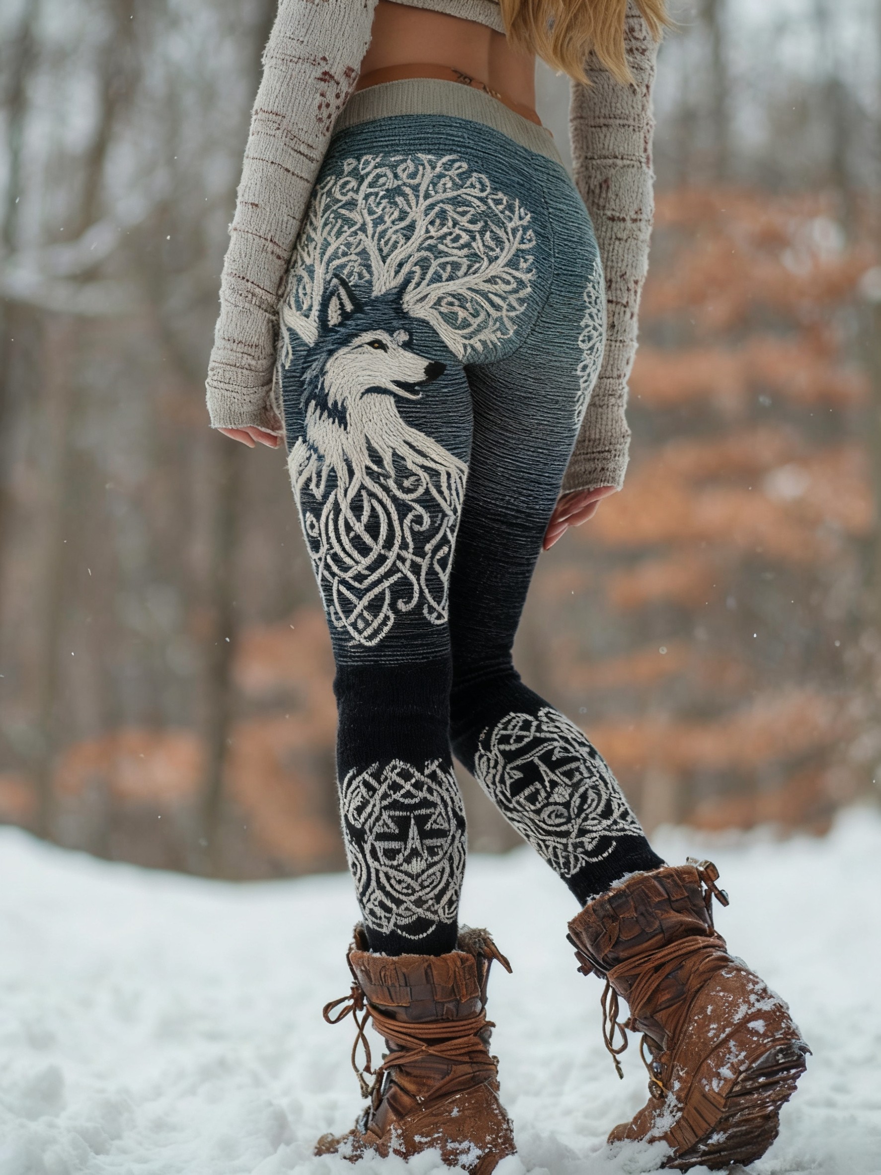 Women's Viking Wolf Tree Of Life Pattern Cozy Leggings