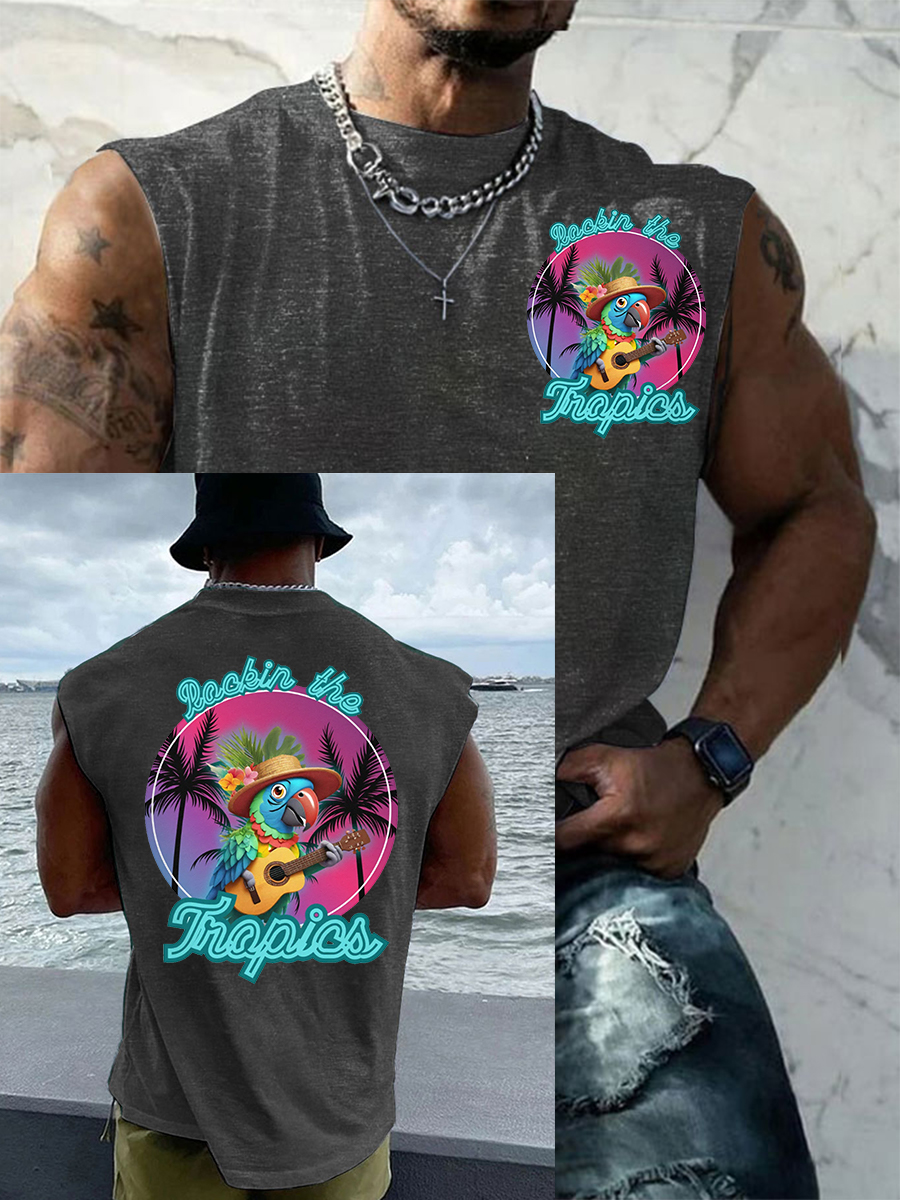 Men's Funny Tropical Parrot Print Casual Tank Top