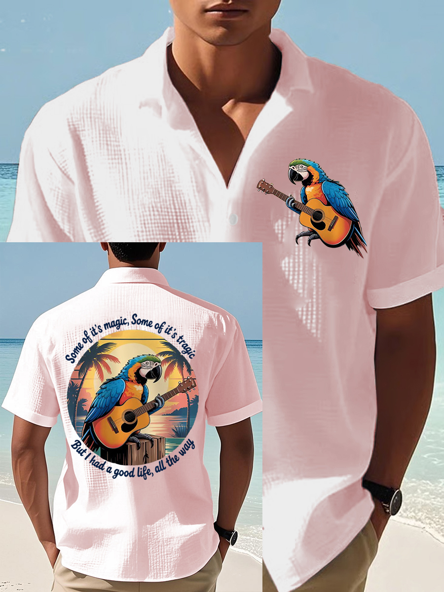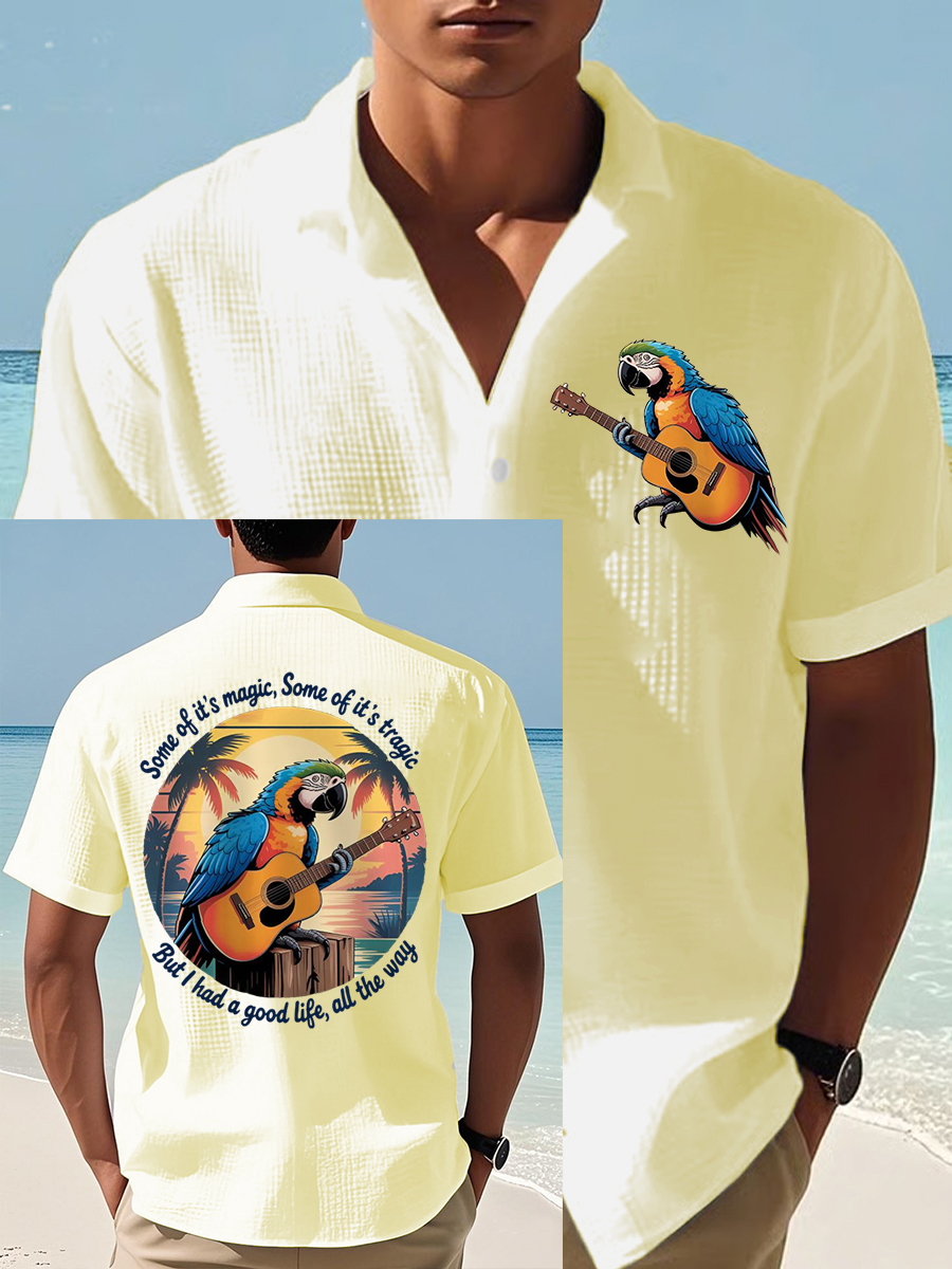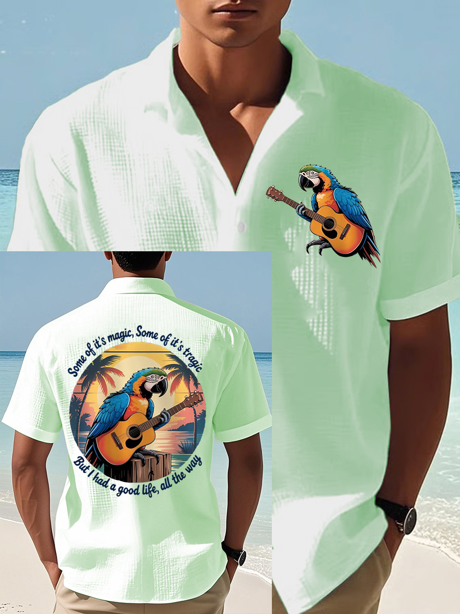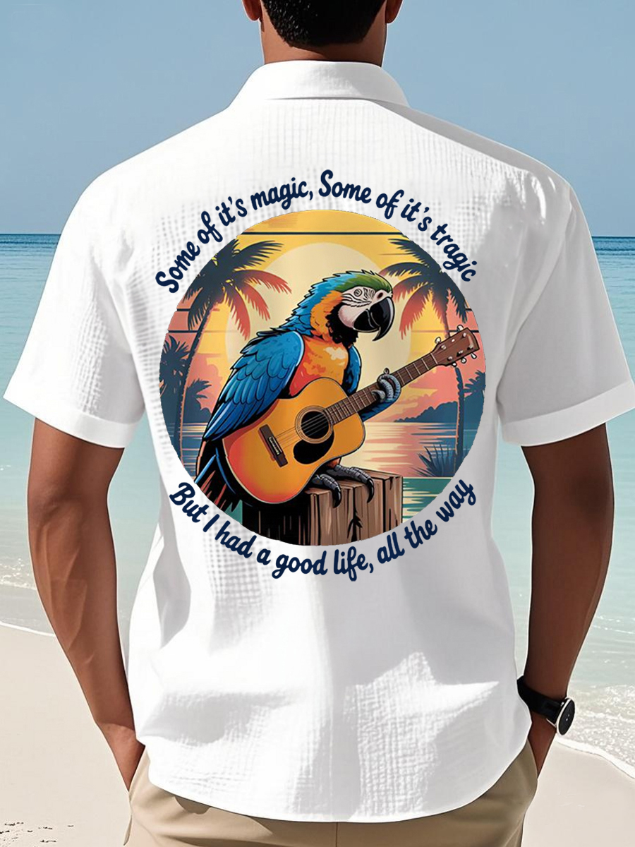 Men's Some Of It’s Magic Some of It’s Tragic, But I Had A Good Life,All The Way Parrot Guitar Print Casual Waffle Short-Sleeve Shirt